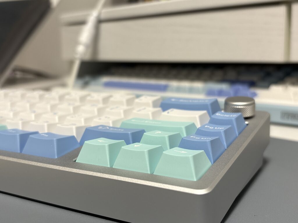 シルバー×アイスブルースイッチの爽やかな配色。デスクに置くだけで気分が上がるデザイン。